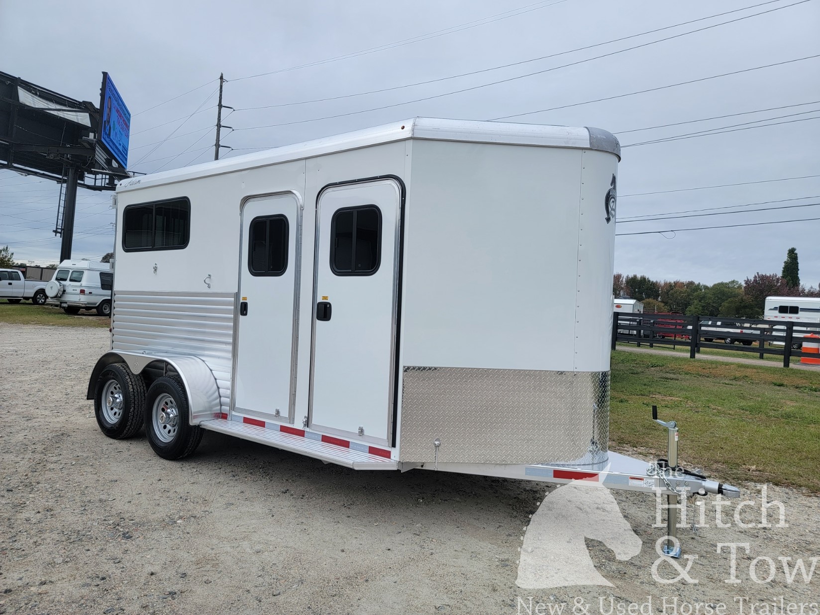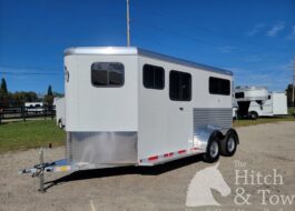 Gorgeous, brand new 2026 Adam 2 horse bumper pull trailer with dressing room! Trailer is 7'6" tall, 6'8' wide, and approximately 15' long. This trailer has the following features:
